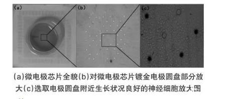 圖1微電極及在微電極芯片上培養的神經細胞放大圖