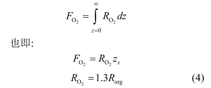 式中:RO2為氧氣消耗速率,μmol/(m3·d);Rorg為有機(jī)質(zhì)降解速率,μmol/(m3·d);zs為氧氣在沉積物中滲透深度,mm。