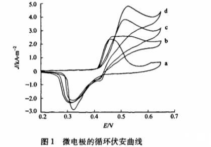 圖1 微電極的循環伏安曲線