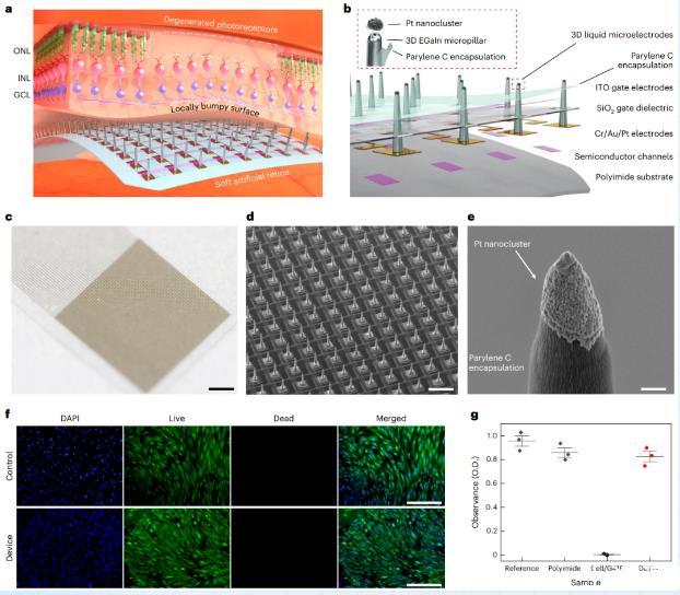 圖1:具有3D液態金屬微電極陣列的軟人造視網膜。