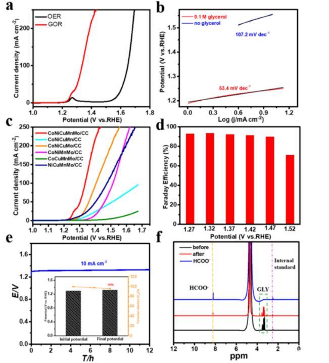 CoNiCuMnMo-NPs/CC電極在過電位和電流密度方面表現出最好的GOR電催化性能。
