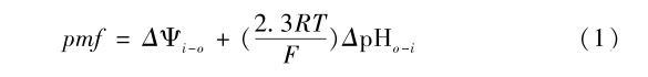 其中i和o代表類囊體內腔和外周基質,ΔΨ和ΔpH為電勢差和pH值差,R、T和F有其通常的物理意義。