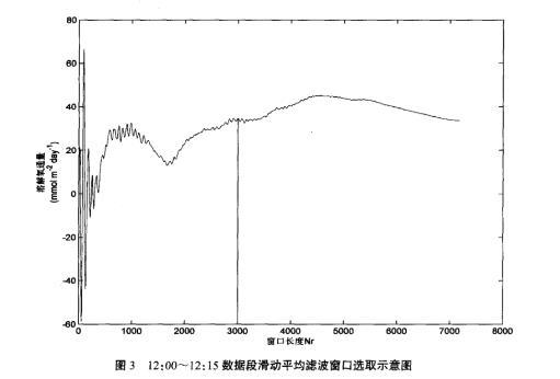 圖3 12:00~12:15數據段滑動平均濾波窗口選取示意圖