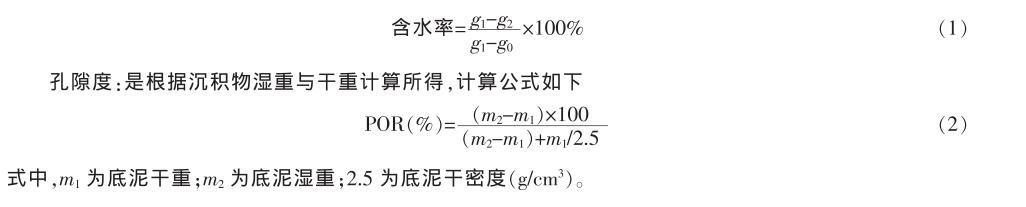 式中,m1為底泥干重;m2為底泥濕重;2.5為底泥干密度(g/cm3)。