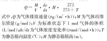 式中,Q為氣體排放通量(μg/(m2·h));M為氣體的摩爾質(zhì)量(g/mol);V為標(biāo)準(zhǔn)狀態(tài)下1mol氣體的體積(L/mol);dc/dt為氣體濃度變化率(μmol/(mol·h));T為靜態(tài)箱內(nèi)溫度(℃);H為靜態(tài)箱箱高(m)。