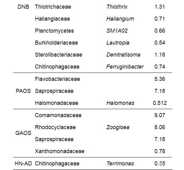 表6科級和屬級的脫氮除磷相關關鍵功能菌群