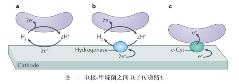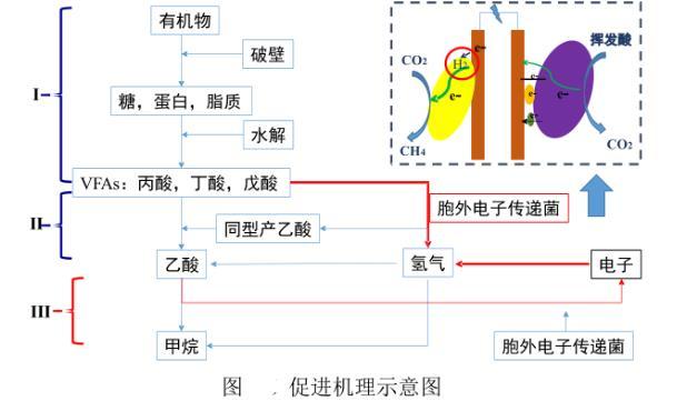 傳統厭氧水處理的能源化過程主要依賴于產甲烷古菌利用乙酸/氫氣作為電子供體驅動二氧化碳還原產生甲烷。在該過程中,主要涉及到嗜乙酸產甲烷菌和嗜氫產甲烷菌,前者在生長速率上要顯著小于后者,然而在傳統厭氧消化過程中,嗜氫產甲烷菌擁有較高的產甲烷速率,但是該途徑只占30%左右,而嗜乙酸產甲烷菌的貢獻則接近70%。因此如何強化嗜氫產甲烷菌的產甲烷過程對于強化厭氧消化過程產甲烷的能力起著至關重要的作用。