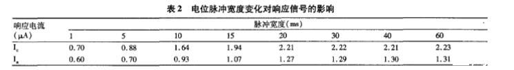 表2電位脈沖寬度變化對響應信號的影晌