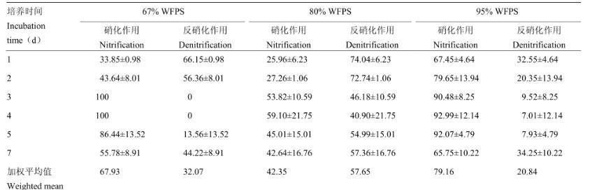 表3不同含水量土壤硝化和反硝化作用對N2O排放的貢獻率