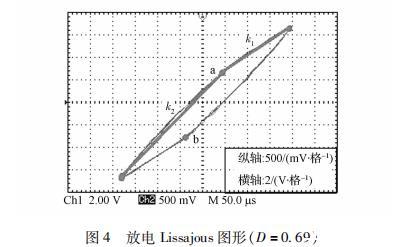 在實驗分析中發現$設定電源頻率固定不變時,在不同的電極間電壓峰峰值Upp下,MDBD放電起始時刻有所差異,且隨著的S~Dl:i,放電起始時刻也逐漸提前;受電暈放電的預電離作用、表面電荷的積累以及微放電的影響¨,在電壓正、負半周期內,電流峰值在大小和數量上均不完全對稱;在MDBD發生的時間段內,電壓波形發生畸變,一直持續到電壓達到峰值放電結束時;但隨著D和放電強度的加強,這種不對稱性出現降低。因此放電Lissajous圖形可以近似為平行四邊形,如圖4所示。在放電結束時,回路中的電荷主要通過MDBD等效電路圖3中c所在的支路,此時放電Lissajous圖形的邊長斜率可近似為圖4中的k;在放電發生時,其Lissajous圖形的邊長斜率可近似為圖4中的。