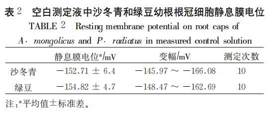 2.1空白測定液中沙冬青和綠豆幼根根冠細胞靜息膜電位