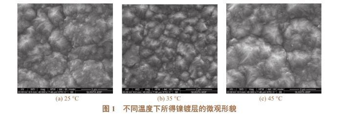 圖1不同溫度下所得鎳鍍層的微觀形貌