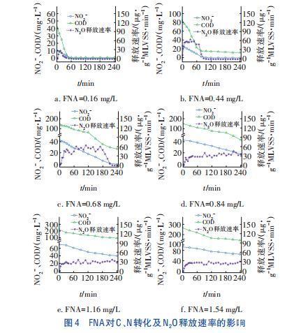 2.3 FNA對NO2-型反硝化及N2O轉化特性的影響