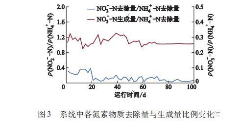 圖3系統中各氮素物質去除量與生成量比例變化圖
