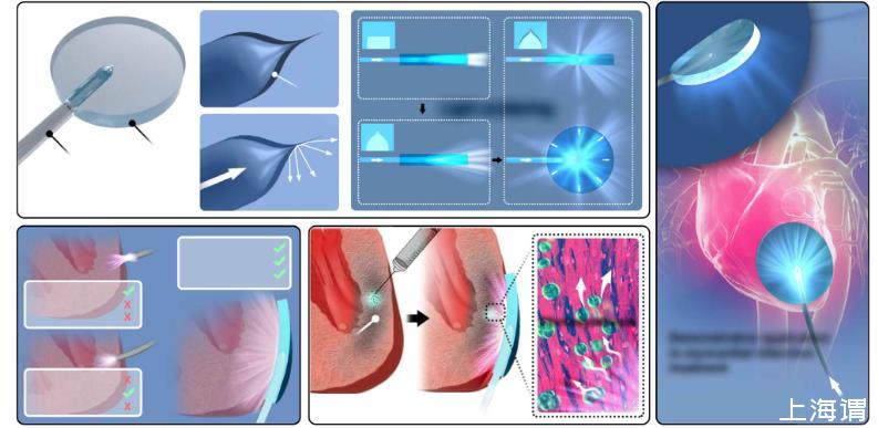 實驗結果表明,iCarP能夠實現大面積、高強度、寬光譜、連續或脈沖式的深度穿透照明,且無需穿透目標組織。在小鼠腫瘤光熱和光動力治療以及大鼠心肌梗死光合作用治療模型中,iCarP展示了其對不同功能和吸收波長的光敏劑的兼容性,并且與臨床相關的光纖結構相比,iCarP的光散射效果能夠改善治療結果。此外,iCarP在機械挑戰性較大的心肌上表現出穩定的照明能力,并且在體內實驗中成功移除了TOF。研究人員還在犬類胸腔鏡手術中測試了iCarP與微創植入和照明的兼容性。