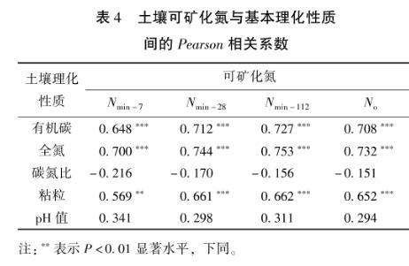 表4土壤可礦化氮與基本理化性質間的Pearson相關系數