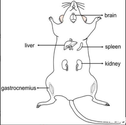 圖1、用于氫氣濃度測量的五種代表性小鼠組織。