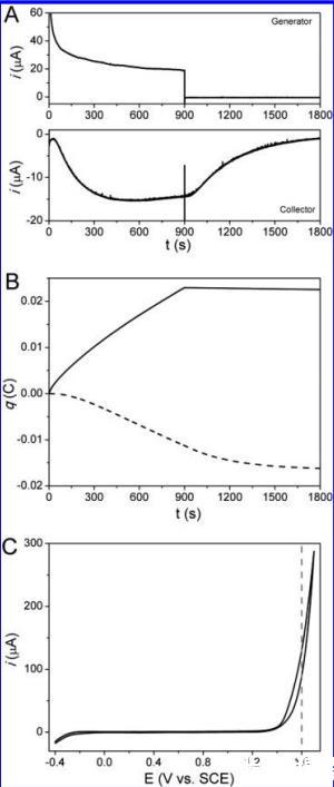 我們在此重點描述使用集電極-發生器雙工作電極裝置明確測定O?生成法拉第效率的重要實驗細節和技術考慮因素。具體而言,將描述使用未修飾的FTO電極進行氧還原,并定義用于靈敏檢測O?的電壓窗口和條件。將描述使用高離子強度溶液以避免工作電極之間的電容干擾,以及確定在此使用條件下C-G池的典型收集效率。