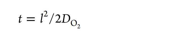 集電極和發生器之間的間距決定了建立電極間穩態濃度梯度(因此穩態電流)的時間常數。從電極之間溶液初始O?耗盡狀態開始,同時將發生器置于能夠形成O?的電位,并將集電極置于能夠選擇性還原O?的電位,將在電極之間建立濃度梯度。該梯度將達到穩態通量,所需時間(t)取決于O?的擴散系數(D_{O?})和電極之間的距離(l),根據公式: