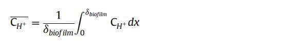根據生物膜厚度和質子濃度深度剖面,可以通過以下方程計算Geobacter生物膜內的平均質子濃度,