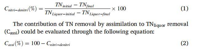 通過同化去除TN對TNLiquor去除的貢獻可以通過以下方程進行評估: