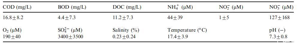 表1新井田河點1河水的物理和化學參數總結。數值表示平均值和標準偏差。