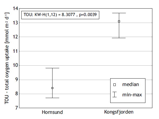 圖3、霍恩松德和康斯峽灣的總耗氧量—Kruskal–Wallis檢驗。