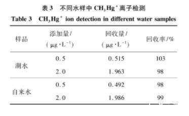 表3不同水樣中CH3Hg+離子檢測(cè)