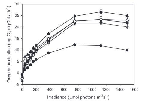 | P_max (mg O? mg Chl-a?1 h?1) | 11.8 ± 0.1 | 21.8 ± 0.8 | 21.5 ± 0.8 | 22.4 ± 1.2 | 25.7 ± 0.2 |