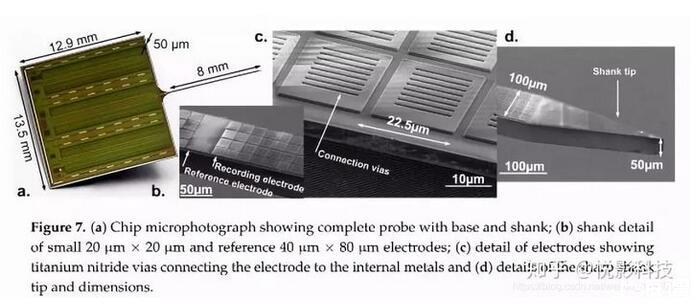 此外,由比利時魯汶大學的Bogdan團隊研制的NeuroSeeker電極把神經微電極的空間分辨率做到了極致[3]。NeuroSeeker電極為寬100 um,長8mm的針狀,其上分布有多達1356個神經電信號采集位點,可最大化地實現高空間分辨率的神經電信號采集。