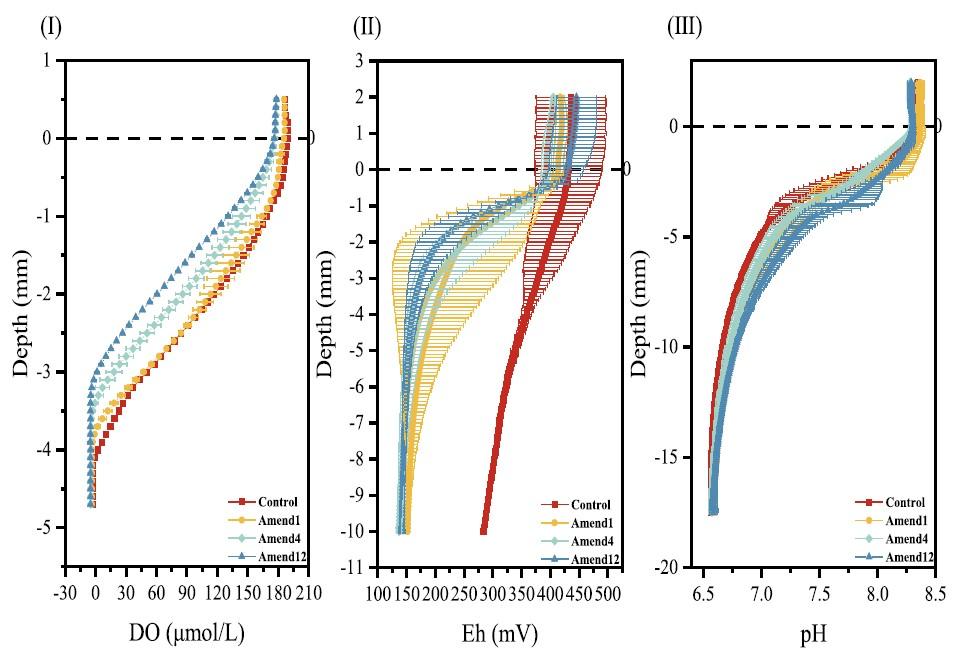 由于水體營養水平的提升,藻華頻繁發生。這些藻華聚集的藻類最終死亡并積累在沉積物表面,影響水生系統的微環境和磷循環。然而關于自然死藻沉積對沉積物內源磷釋放影響的研究尚缺乏。在本研究中,研究人員通過評估微生物代謝和群落結構,調查了不同濃度死藻沉積對沉積物磷釋放的長期影響及其潛在機制。結果表明死藻沉積后,磷從沉積物向水體的釋放在第40天達到峰值(Amend12組為0.14±0.017 mg/L),且在沉積物-水界面的SRP(溶解性活性磷)交換能力在階段1(0-3天)達到最大(Amend12組為6.09±1.63 mg/(cm2·d))。這可能主要歸因于死藻沉積引入了大量有機質(如有機碳和有機磷),從而改變了沉積物微環境,通過增加碳源代謝、減少細胞內氨抑制和創造更適宜的厭氧條件,提高了磷循環微生物(如聚磷菌)的活性。因此,本研究提高了我們對富營養化淺水湖泊控制內源磷釋放管理策略的理解,表明通過在水華高峰期收割藻類可以減輕新鮮沉積藻類的啟動效應。Unisense微電極系統用來精確測量沉積物剖面的關鍵物理化學參數,通過微電極數據,論文論證了死藻沉積如何通過改變微環境(如創造厭氧條件)驅動內源磷釋放。具體而言,DO和Eh的下降增加了磷的遷移能力,這與微生物群落結構變化(如Gallionellaceae的富集)相互印證,強化了“死藻-微環境-微生物-磷釋放”的因果鏈。