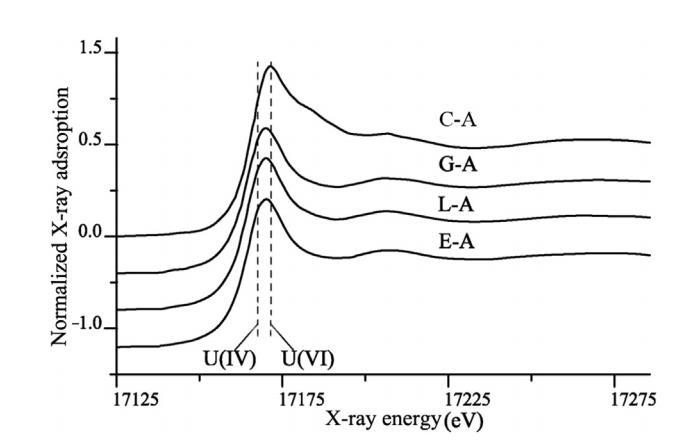 圖2.沉積物樣本在培養90天后的U L3-edge XANES 光譜(C-A代表第90天未經處理的微宇宙沉積物樣本)。