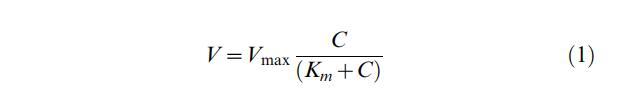 其中a是低氧水平下曲線的初始斜率。為了使用半飽和常數(Km),對方程進行了修改,采用以下關系式,表示符合Michaelis-Menten動力學的速率-濃度曲線的初始斜率: