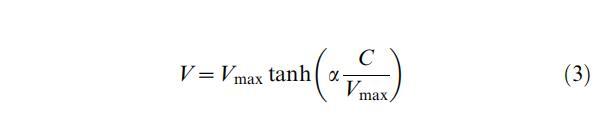 為了在模型和實驗數據之間獲得更好的擬合,我們還測試了一個經驗關系,該關系最初是為光合作用的光飽和曲線而建立的[30]。Jassby和Platt方法表示呼吸速率與氧濃度的關系如下: