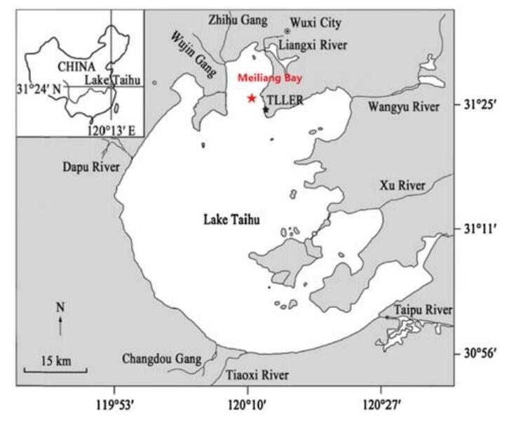 采樣點位于南京地理與湖泊研究所太湖生態系統研究實驗室(TLLER)(北緯31°26′18〃,東經120°11′12〃)附近的梅梁灣(圖1)。梅梁灣是太湖最富營養化的區域之一(Xu等人,2014)。2007年至2009年,梅梁灣每年的葉綠素濃度繼續增加,達到43μg/L的峰值,此后保持在20μg/L以上(Xu等人,2017年)。連接梅梁灣的三條河流吳井港、芝湖港和梁溪河都已被當地政府關閉,以防止外來污水進入梅梁灣。