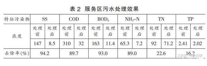 針對膜生物反應器的實際效果進行驗證,在婁衡高速項目中對膜生物反應器的實際效果進行了實測。處理效果如表2所示。