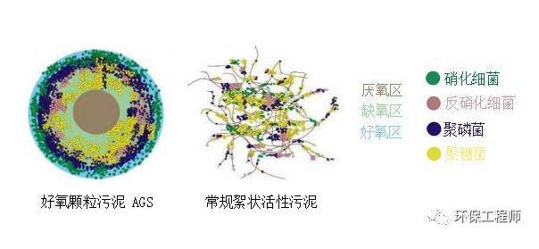 好氧顆粒污泥具有致密的結構與較大的粒徑,由于氧氣傳質限制,顆粒污泥呈現外部為好氧區,內部存在缺氧或厭氧區的狀況,為好氧、兼性及厭氧微生物提供了各自適宜的生存環境,由此使得好氧顆粒污泥能夠進行各種好氧、厭氧代謝活動。與傳統活性污泥絮體相比,好氧顆粒污泥具有以下優勢:形狀規則,結構緊湊致密,沉降性能好,生物量較高,同時具備多種微生物功能,剩余污泥量較少,對生物毒素以及有機負荷波動的耐受能力強等,已成為最有前途的廢水生物處理技術之一。