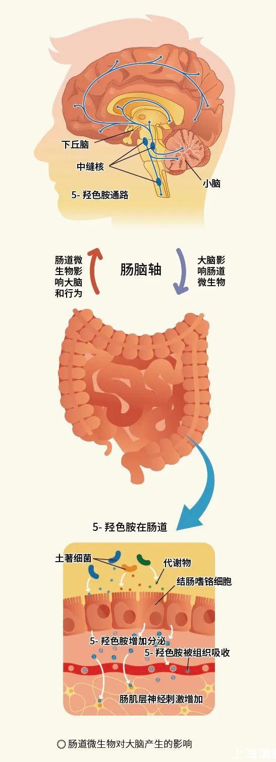 概括來講,腸腦軸是指涉及多個生物系統的調節通路,在腸道菌群與大腦之間構建起一種獨特的通信方式:大腦可通過中樞神經系統調節腸道微生物的組成和行為,腸道微生物也可通過神經、內分泌、免疫、循環等多種系統參與對大腦信號的調節,維持人體的健康,甚至影響大腦的活動。
