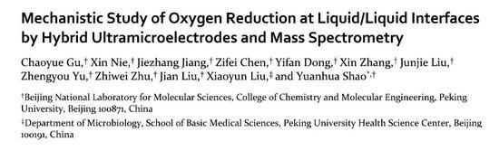 “MechanisticStudy of Oxygen Reduction at Liquid/Liquid Interfaces by HybridUltramicroelectrodes and Mass Spectrometry”