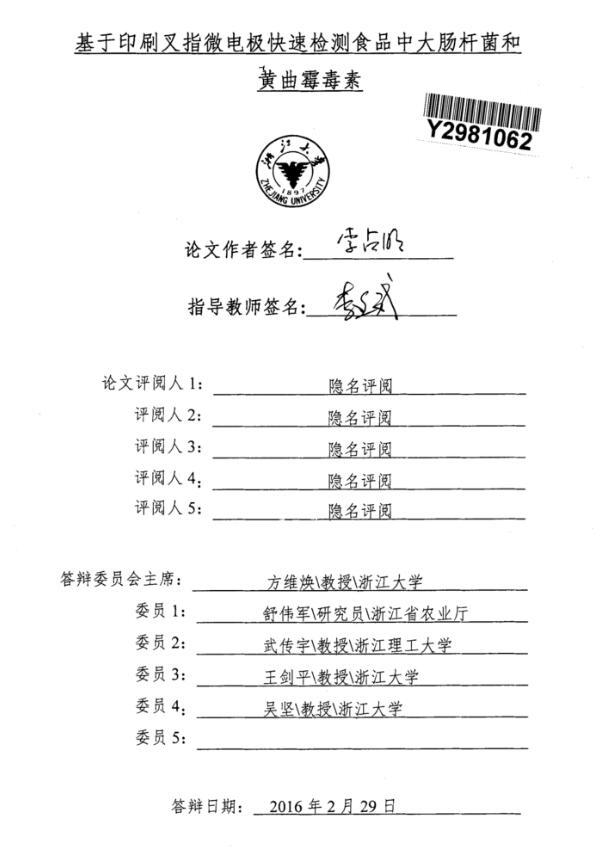 【摘要】:真菌毒素可以引起人類癌癥的發生,黃曲霉毒素B1(AFB1)是世界衛生組織認定的Ⅰ級天然致癌物質,黃曲霉毒素的污染帶來的健康危害和經濟損失已經成為備受關注的焦點問題。除此之外,以大腸桿菌0157:H7為代表的致病菌,除了對病人的健康乃至生命存在危害外,其帶來的經濟損失也極為嚴重。因此開展食品中致病菌和真菌毒素相關的研究工作具有重要意義和價值。