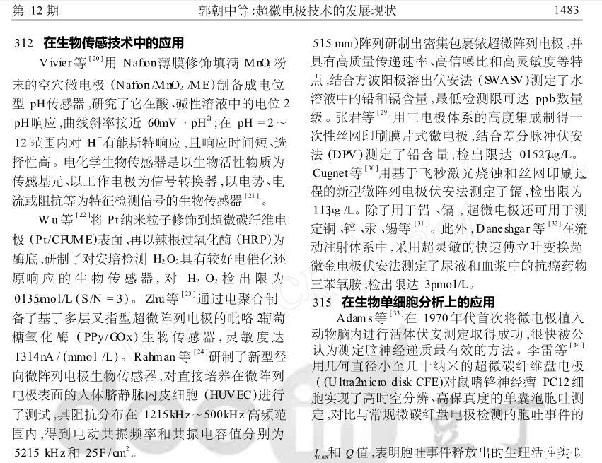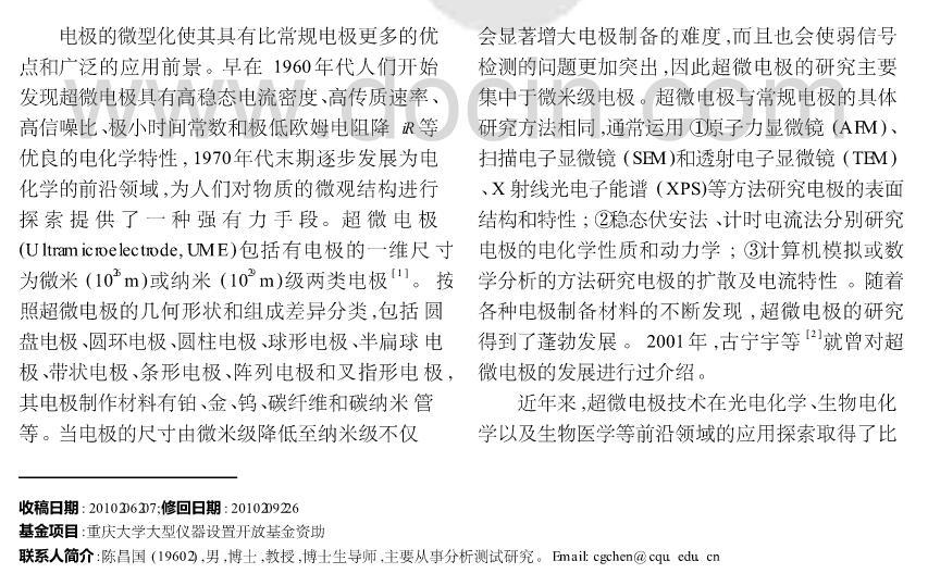 【摘要】:本文在闡述超微電極技術相關原理的基礎上,總結了超微電極的特點、類型及研究方法,綜述近十年來超微電極的制備與應用進展,并介紹了超微電極的發(fā)展現(xiàn)狀。