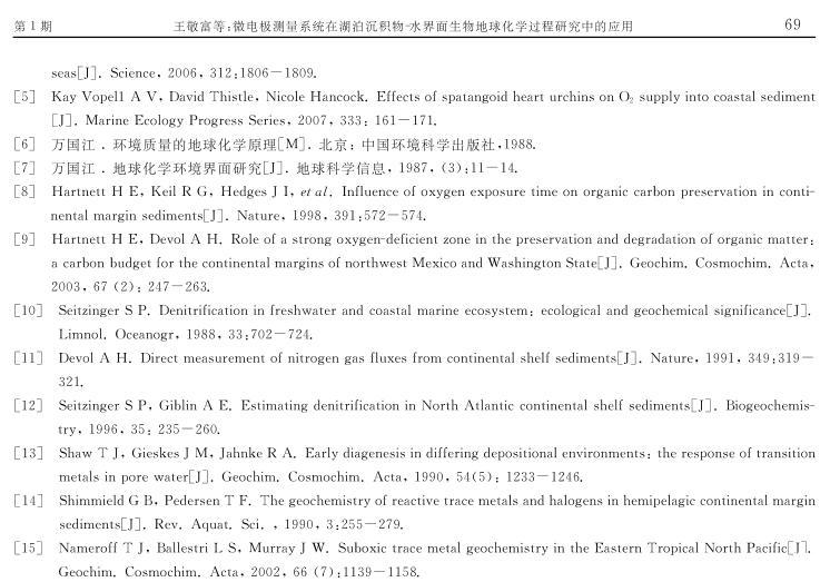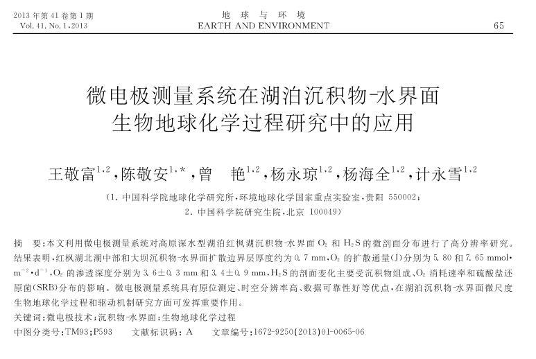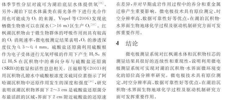 微電極測量系統具有原位測定、時空分辨率高、數據可靠性好等優點,在湖泊沉積物-水界面微尺度生物地球化學過程和驅動機制研究方面可發揮重要作用。