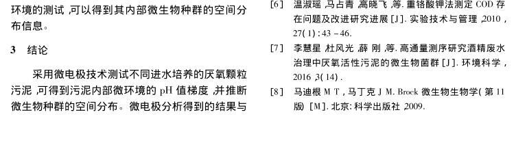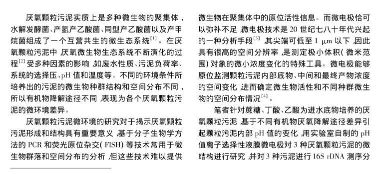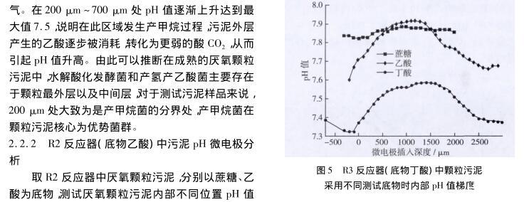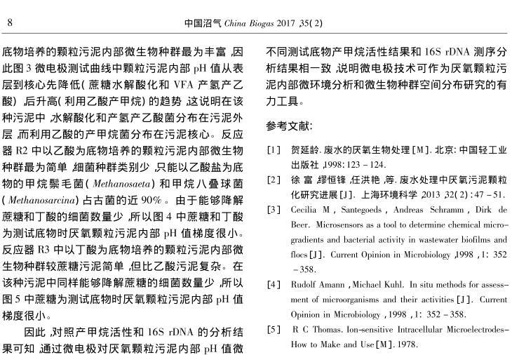 【摘要】:文章分別以蔗糖、乙酸和丁酸為進水唯一碳源,運行3個UASB反應(yīng)器,當反應(yīng)器穩(wěn)定運行后,采用自制氫離子選擇性液膜微電極對3種厭氧顆粒污泥進行內(nèi)部pH值梯度分析,并對厭氧顆粒污泥進行了多種測試底物的產(chǎn)甲烷活性分析和16S rDNA測序分析。結(jié)果表明,采用微電極技術(shù)可以準確測定厭氧顆粒污泥內(nèi)部的pH值梯度,并推斷微生物種群的空間分布,所得結(jié)果與產(chǎn)甲烷活性和16S rDNA測序分析結(jié)果相一致,說明微電極技術(shù)可作為厭氧顆粒污泥內(nèi)部微環(huán)境分析和微生物種群空間分布研究的有力工具。