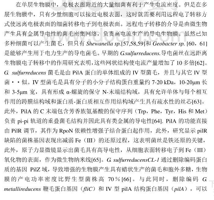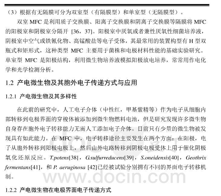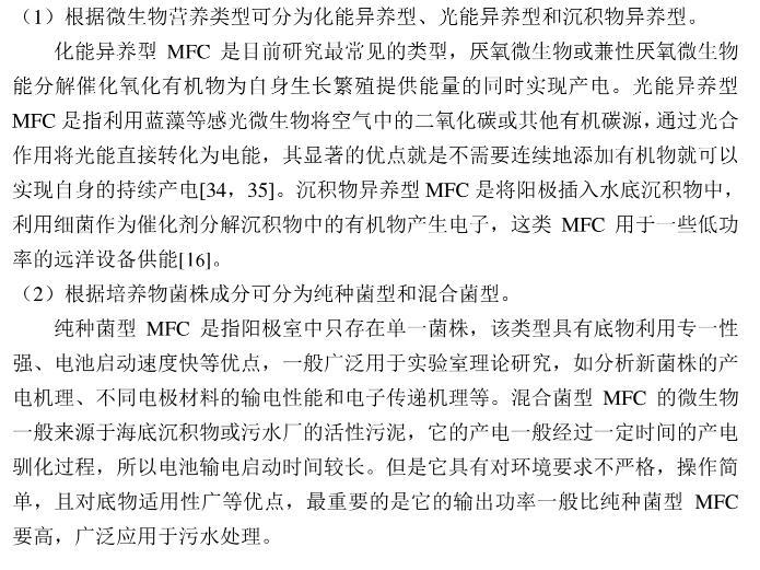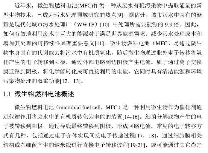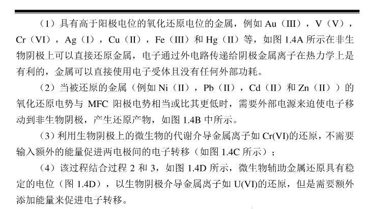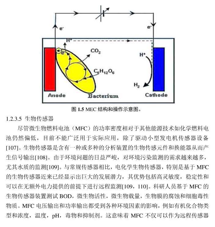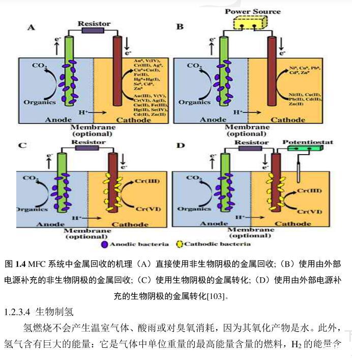 【摘要】:微生物燃料電池(microbial fuel cell,MFC)是一種利用微生物作為催化劑將有機(jī)物中的化學(xué)能轉(zhuǎn)化為電能的裝置。它將污水處理與電力生產(chǎn)有效的結(jié)合在一起,為能源和環(huán)境問題提供了新思路和新方法。MFC用可以自我復(fù)制再生的微生物替代了傳統(tǒng)化學(xué)燃料電池的貴金屬作為催化劑,同時(shí)微生物種類繁多、代謝途徑豐富且易調(diào)控,理論上能夠催化所有小分子有機(jī)物甚至部分無機(jī)物降解而產(chǎn)生能量,因而它是具有低成本、高效率、無污染等優(yōu)點(diǎn),在污水處理、生態(tài)修復(fù)和便攜式能源等領(lǐng)域具有巨大的應(yīng)用前景。