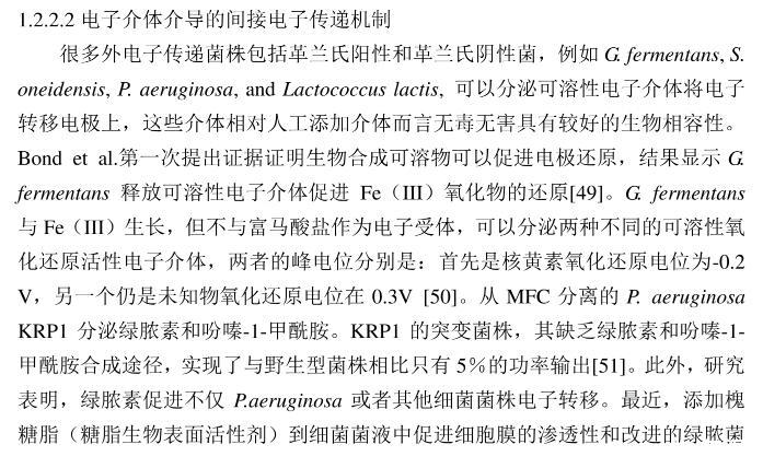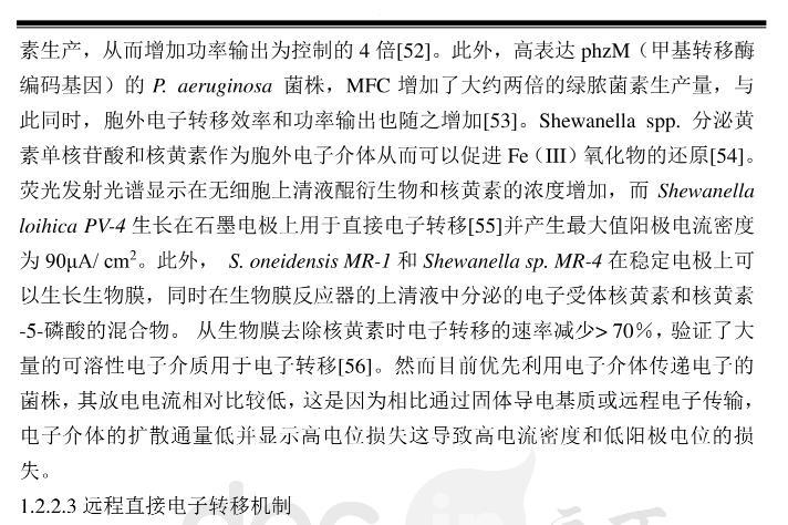 本研究以銅綠假單胞菌(Pseudomonas aeruginosa ATCC 9027)為產(chǎn)電菌株,通過粉末微電極的應(yīng)用和合適的分析方法的選擇,實(shí)現(xiàn)不同位置的陽極液中電子介體(吩嗪)的實(shí)時(shí)監(jiān)測和利用生物膜抑制劑(魚腥草素鈉)抑制生物膜的形成,并通過電化學(xué)分析方法進(jìn)行研究,提出銅綠假單胞菌胞外電子傳遞機(jī)理。