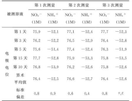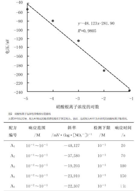 對國內外市場上已有的硝酸根離子、銨根離子敏感劑或離子敏感劑配方進行篩選,根據離子選擇性、斜率、響應時間、重現性及穩定性等指標確定最適宜的離子選擇性敏感膜。