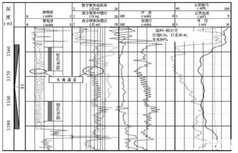 當在高壓水流推進到的油層中鉆井時,儲層內壓力高,由于高壓注水形成的水流通道變成泄壓通道,水流通道沒有泥漿侵入,泥餅減小或不易形成泥餅。微電極曲線就表現為微梯度和微電位局部重合或幅度差局部減小,我們可由此判斷該油層被水淹,微電極幅度減小的部位就是水淹的部位,沒有幅度差微電位和微梯度曲線重合的地方就是水淹通道。