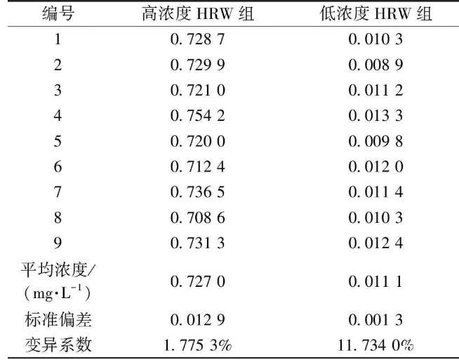 表2電極法檢測高濃度和低濃度HRW的精確度分析