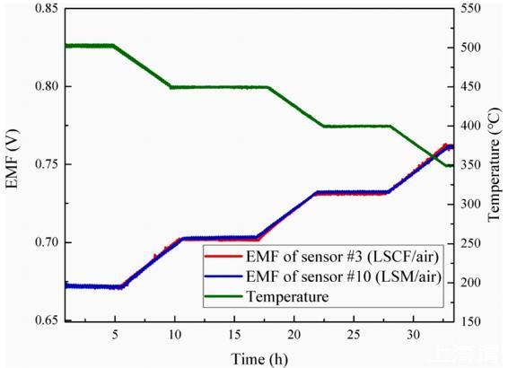 3)下限溫度測試表明,LSCF/空氣參考傳感器在低至200℃時仍能正常工作。