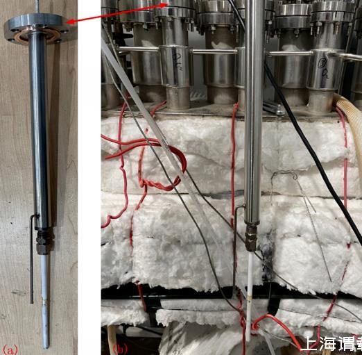 氧傳感器物理示意圖如圖3(a)所示,傳感器在膨脹罐中的安裝位置如圖3(b)所示。膨脹罐上方設有若干安裝孔。傳感器從安裝孔插入膨脹罐內的液體LBE,并通過密封法蘭連接。
